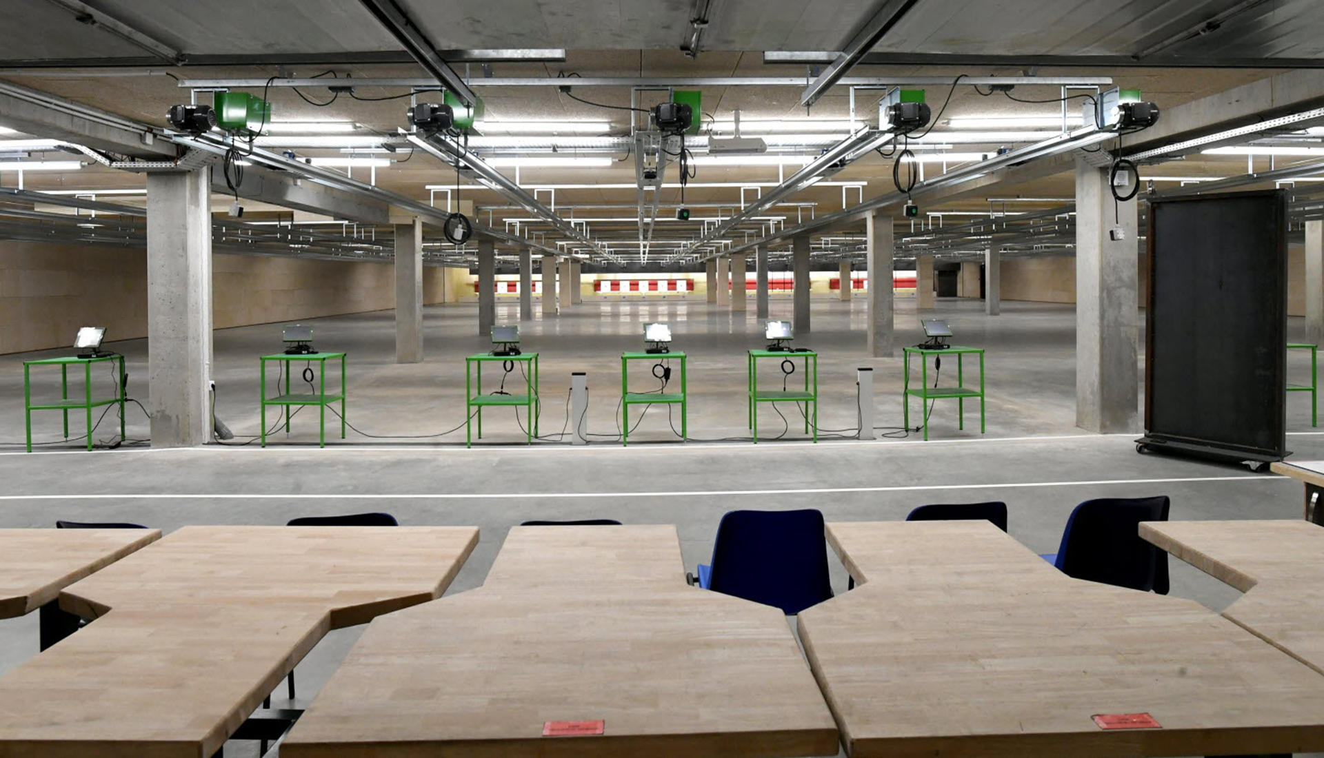 | 50 mètres | Équipé de cibles électroniques sur l'ensemble des postes. | Calibre .22 Long Rifle (carabine et pistolet) : Tir couché, debout, trois positions, Bench Rest. |
