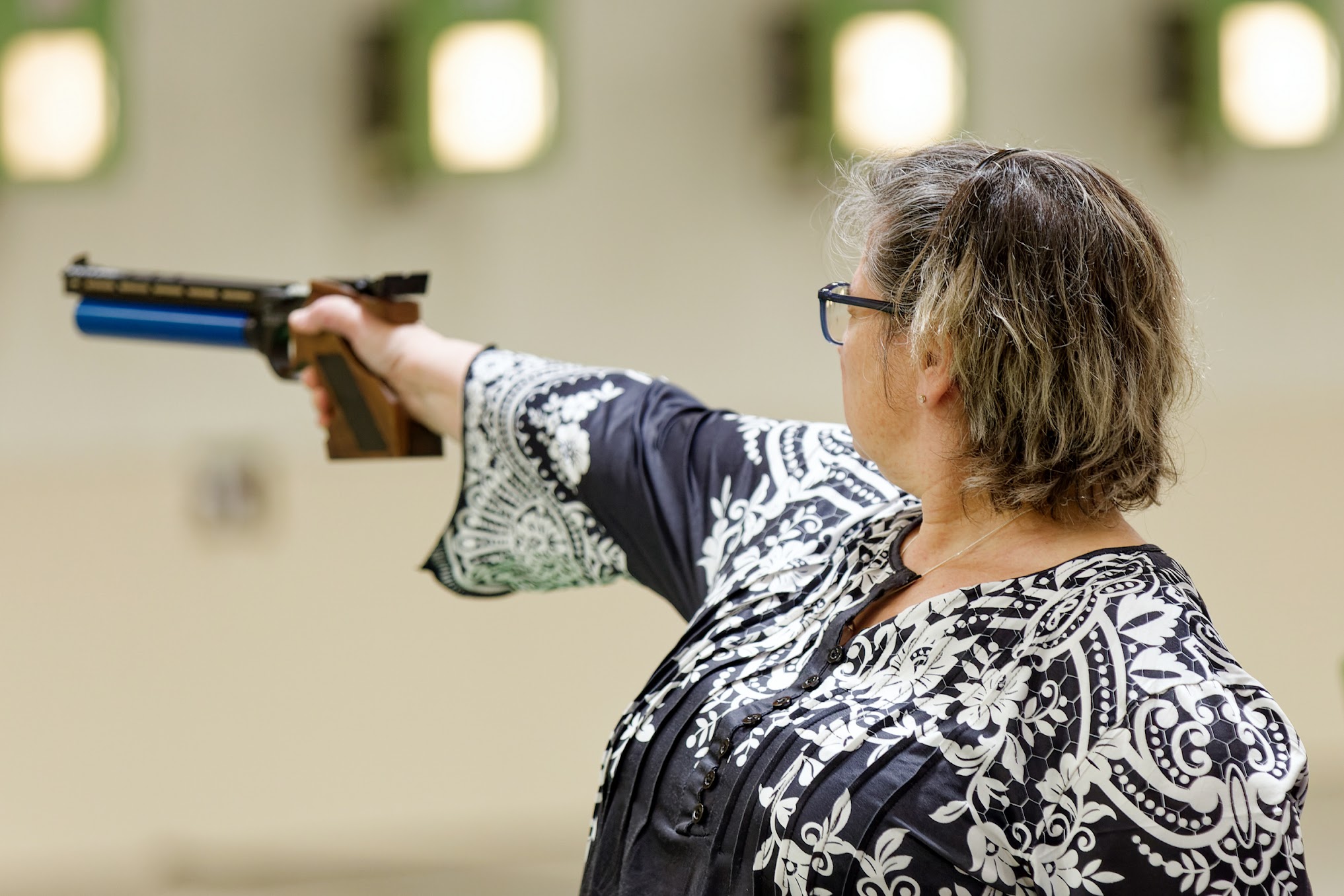 Tir de Précision (Pistolet Libre). Exige le plus haut niveau de concentration et de finesse technique. Discipline Olympique. |