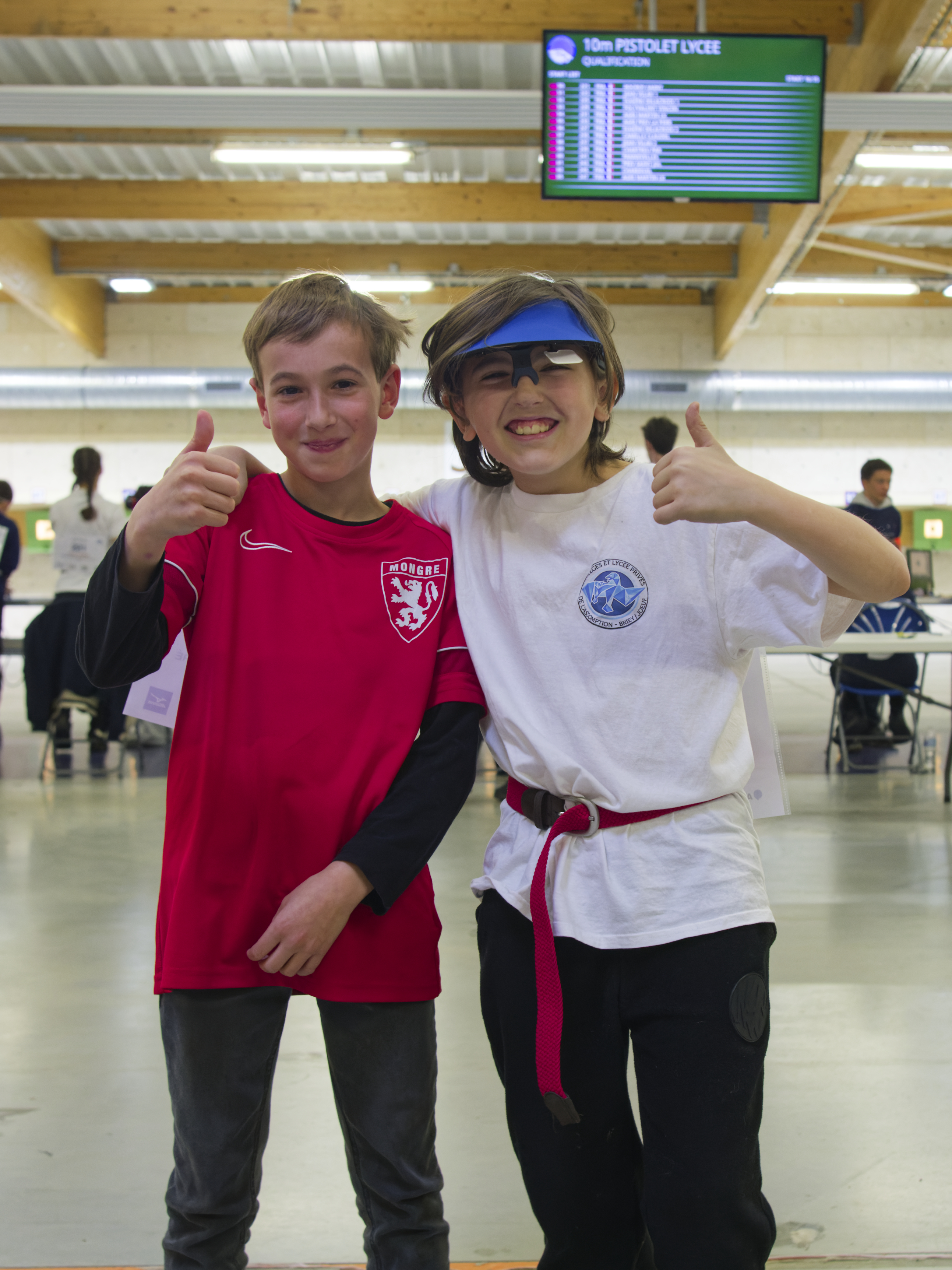 Représentant le collège Notre Dame de Mongré (Villefranche-sur-Saône), Romain et Thomas Rivière étaient engagés en catégorie "Collège" au pistolet. Dès la phase de qualification, le ton était donné : avec un score solide de 686/800, l’équipe s’est hissée à la 3ème place.